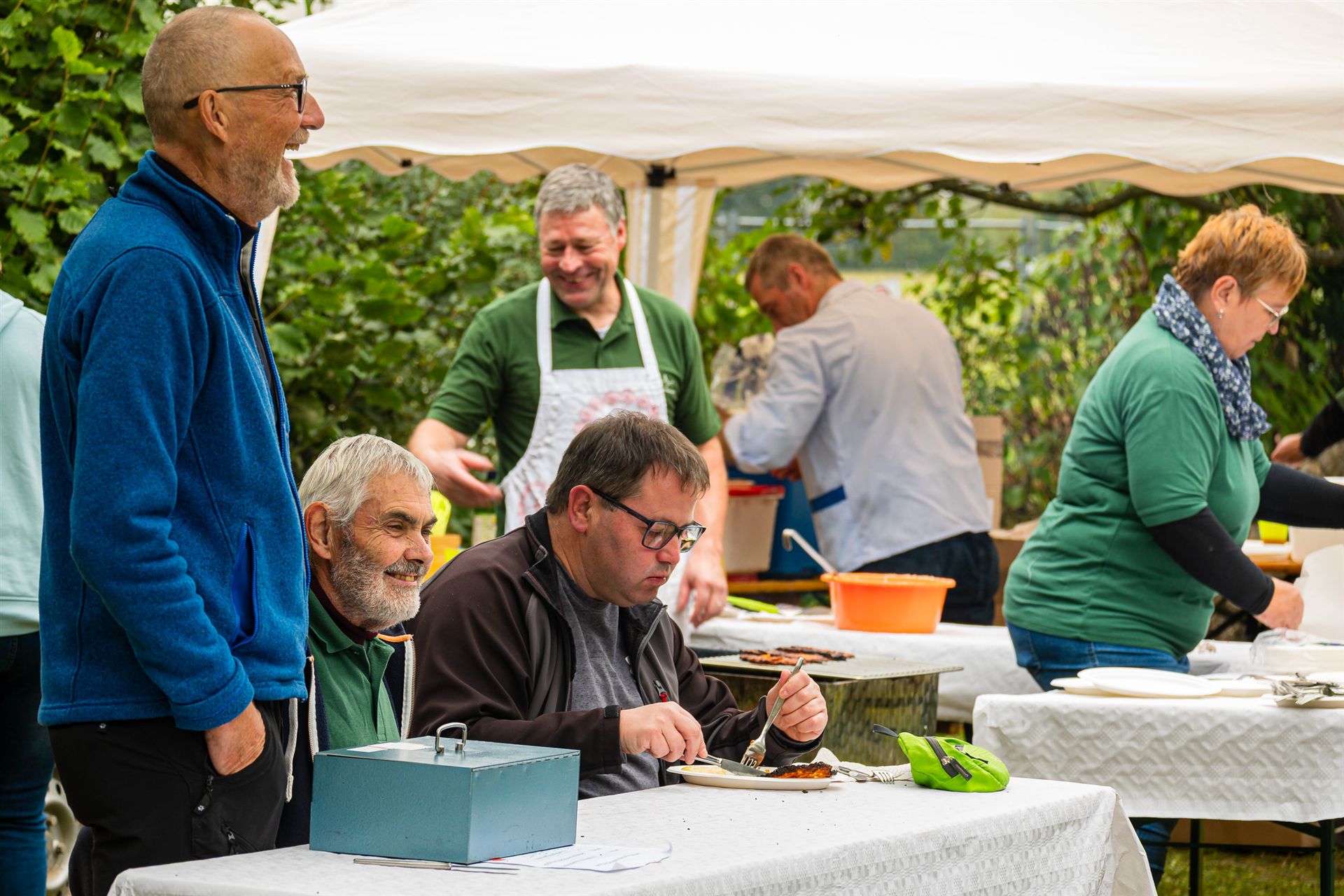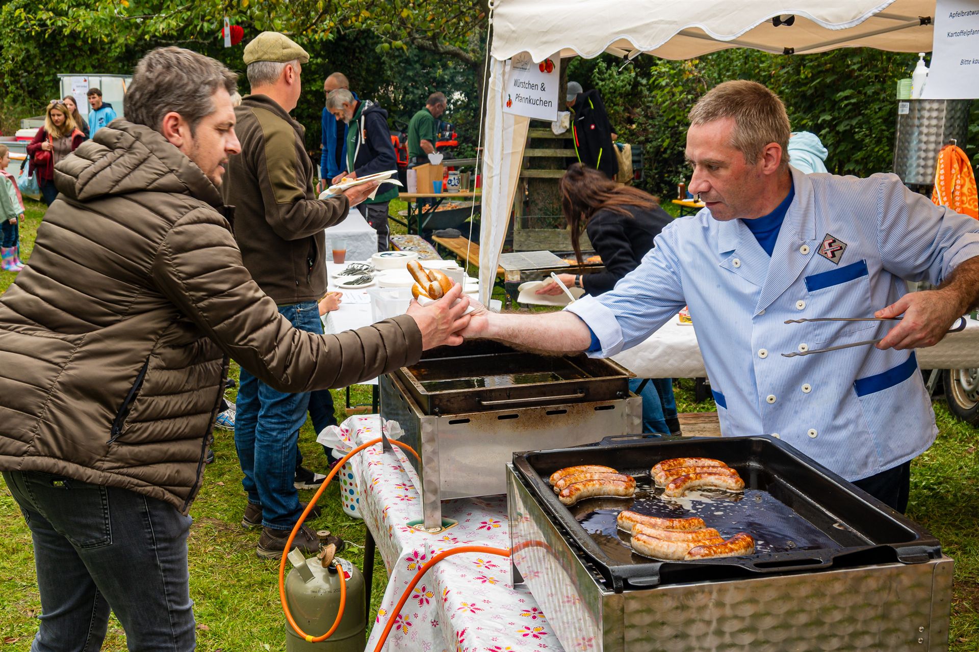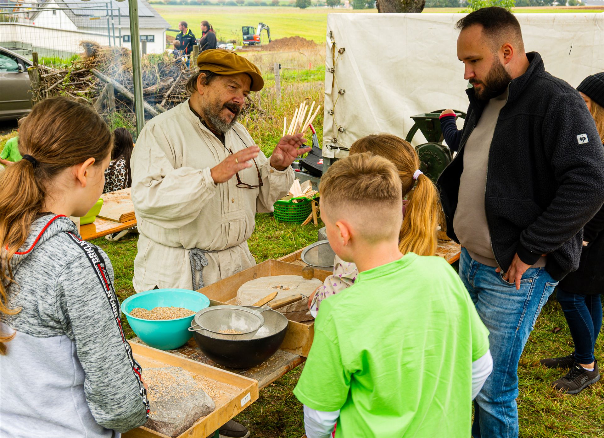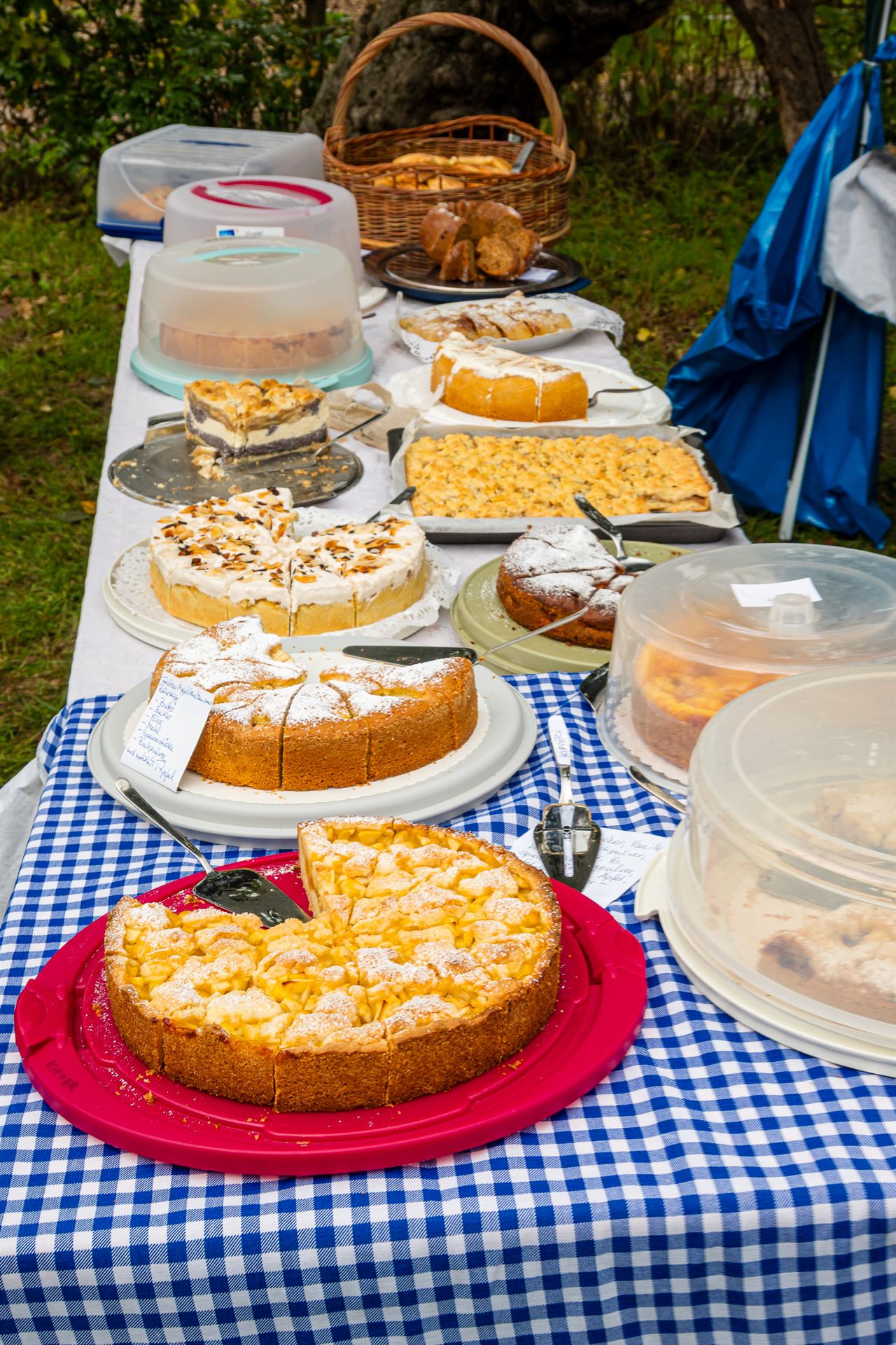 Frischer Apfelsaft wurde gepresst, es gab Apfelbratwurst und leckeren Kuchen, verschiedensten Apfelsorten konnten verkostet und von unserem Pomologen bestimmt werden und es gab viele Informationen über den Lebensraum Streuobstwiese, die Honigbiene und den Weg vom Korn zum Brot.