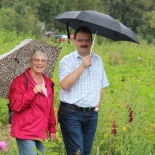 Besonders hervorzuheben sind der große Flutteich, das einzigartige Insektenhotel, die Benjeshecke, die wunderbar blühende Blumenwiese sowie der Lesesteinhaufen, die bei einem Rundgang von den 65 Besuchern begutachtet wurden. Mit der Enthüllung eines Dachreiters auf dem Insektenhotel durch Bürgermeisterin Cäcilia Reichert-Dietzel und Landrat Joachim Arnold wurde die Fläche auch von offizieller Hand eingeweiht und beide dankten den Naturfreunden für ihre Arbeit und Einsatz im Dienste des Naturschutzes.