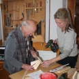 Nachdem die professionellen Futterhäuschen fertiggestellt waren, ging eine kleinere Gruppe daran, mit Ulla Heckert neue Kartons für die Althandysammlung des Naturschutzfonds zu bauen. Aus den alten Mobiltelefonen werden die wertvollen Rohstoffe wiederverwendet und der Naturschutzfonds erhält Gelder für seine Projekte.