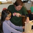 Kräftiges Hämmern und laute Sägegeräusche wiesen den Weg in die Naturfreunde-Werkstatt. Für den Vogelschutz wurden mit über 50 Kindern und Erwachsenen nachfüllbare Futterhäuschen nach der Vorlage von Stefan Kern aus Holz gebaut. Seit mehreren Jahren kooperieren die Naturfreunde bereits mit der Schottener soziale Dienste GmbH, so dass auch für diese Bauaktion der Holzzuschnitt in deren Werkstatt für behinderte Menschen angefertigt wurde.