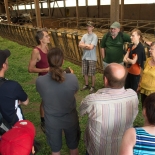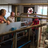 Heute hat er etwa 170 Kühe, die tagsüber auf den Nidderwiesen weiden und zusätzlich mit eigenproduziertes Feldfutter wie Kleegras und im Winter mit Gras- und Maissilage gefüttert werden. Zurzeit werden Milch und Eier ab Hof vermarktet, wobei das Sortiment in einem im Bau befindlichen Hofladen zukünftig erweitert werden soll. Bei einem Rundgang konnte der Offenstall mit eingestreuter Liegefläche und Außenterasse besichtigt werden. Im Melkstand mit angeschlossener Milchkammer erklärte Keller die tägliche Gewinnung von etwa 3000 Litern Milch sowie die Kühlung, Abholung und Vermarktung. Vorbei am Abkalbestall und der Güllelagerung ging es zum tierischen Höhepunkt; den Kälbern. In den Außenboxen konnte man die Jungtiere aus nächster Nähe beobachten und streicheln.