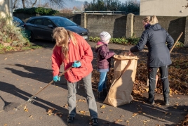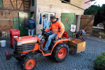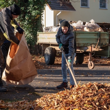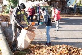 Im alten Schulhof an der Hauptstraße war die nächste Gruppe zu Gange, die viele Säcke mit dem Laub der großen Kastanienbäume füllten und aufluden.