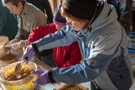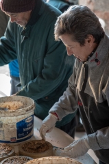 Gemischt mit Sonnenblumenkernen, Erdnüsse und Haferflocken wurden die Futterhäuschen und Fettringe in der Hofreite von Familie Fellinger mit der Hilfe von vielen Kindern befüllt.