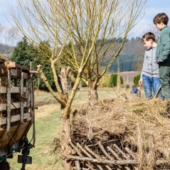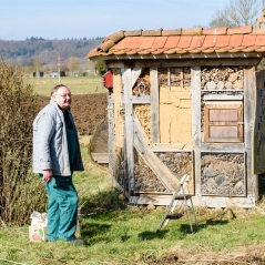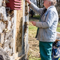 Mit den ersten Sonnenstrahlen sind auch die ersten Wildbienen unterwegs, sodass auch das große Insektenhotel auf Vordermann gebracht wurde.