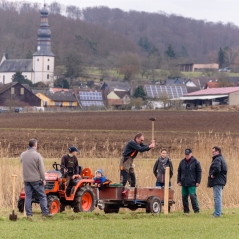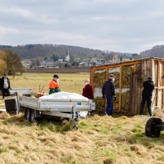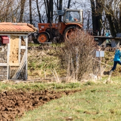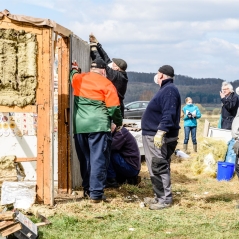 Bevor allerdings an eine Aussaat zu denken ist, musste eine Gartenhütte abgerissen und die Bauelemente fachgerecht entsorgt werden. Nun kann die aufwändige Bodenbearbeitung beginnen.