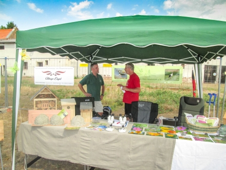 Anlässlich des Ranstadt-Tages haben die Naturfreunde Ober-Mockstadt ein besonderes Augenmerk auf den Schutz von Insekten gelegt und für die Anlage von Blühstreifen geworben. Die interessierten Besucher konnten für nur einen Euro Samenpäckchen für 10 Quadratmeter kaufen und erhielten von den Standbetreuern eine entsprechende Aussaatempfehlung. Gerade im Spätsommer mangelt es an Blüten in der Landschaft und somit auch an Nahrung für Insekten. Die Blühmischung kann auch jetzt und bis Oktober noch in abgeernete Beete gesät werden, um einen Farbakzent im eigenen Garten zu setzen.