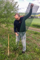 Am vergangenen Samstag haben wir unsere stark in Mitleidenschaft gezogenen Sträucher vor weiterem Wildverbiss bewahrt. Mit Schutzgittern, wie sie auch bei Neupflanzungen im Wald verwendet werden, haben wir die Sträucher eingepackt, um ihnen eine ungestörte Entwicklung zu ermöglichen.