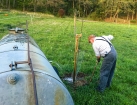 Aufgrund der wochenlangen Trockenheit haben wir bereits zweimal die neu gepflanzten Obstbäume bewässert. Bisher entwickeln sie sich sehr gut.