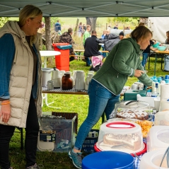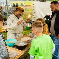 Frischer Apfelsaft wurde gepresst, es gab Apfelbratwurst und leckeren Kuchen, verschiedensten Apfelsorten konnten verkostet und von unserem Pomologen bestimmt werden und es gab viele Informationen über den Lebensraum Streuobstwiese, die Honigbiene und den Weg vom Korn zum Brot.