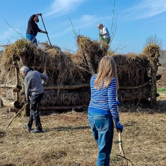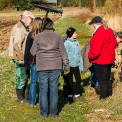 Nun wurde das Schnittgut von Blühflächen und Schilf- und Wiesenflächen zusammengerecht, und auf dem Ringelnatterhaufen im Lehrbiotops aufgeschichtet.