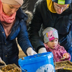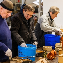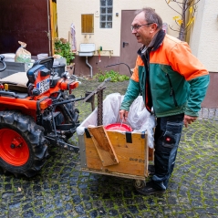Es gab vor dem Winter viel zu tun: Rinderfett auslassen, mit Sonnenblumenkernen, Erdnüsse und Haferflocken mischen und in Futterhäuschen und Fettringe füllen, am Bürgerhaus wurde angepflanzt.