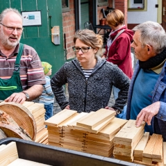 Der Zusammenbau der vorgefertigten Teile, die zuvor in der Behindertenwerkstatt in Schotten für uns hergestellt wurden, erfolgte in der Naturfreundewerkstatt in der Schulstraße 8.